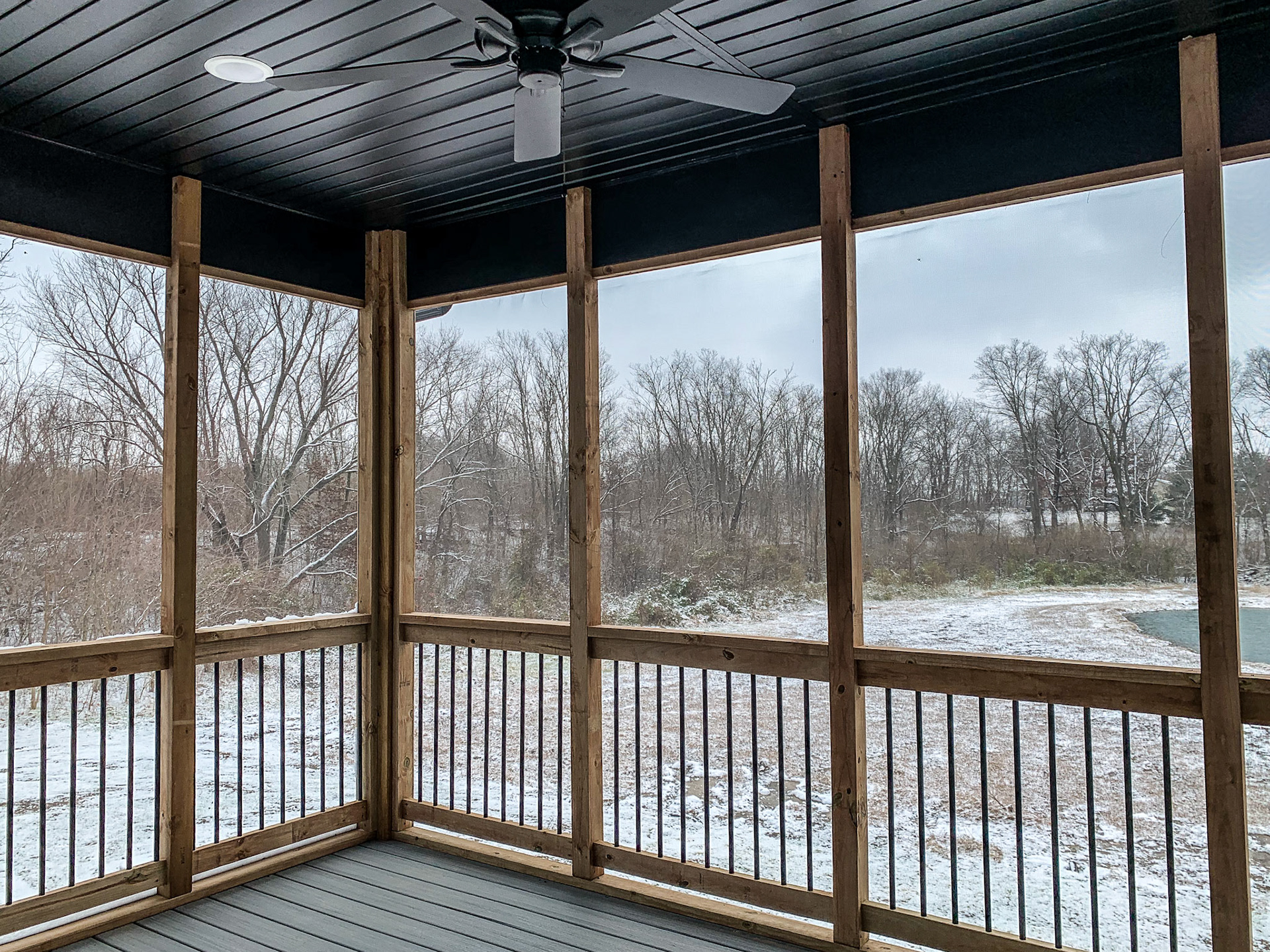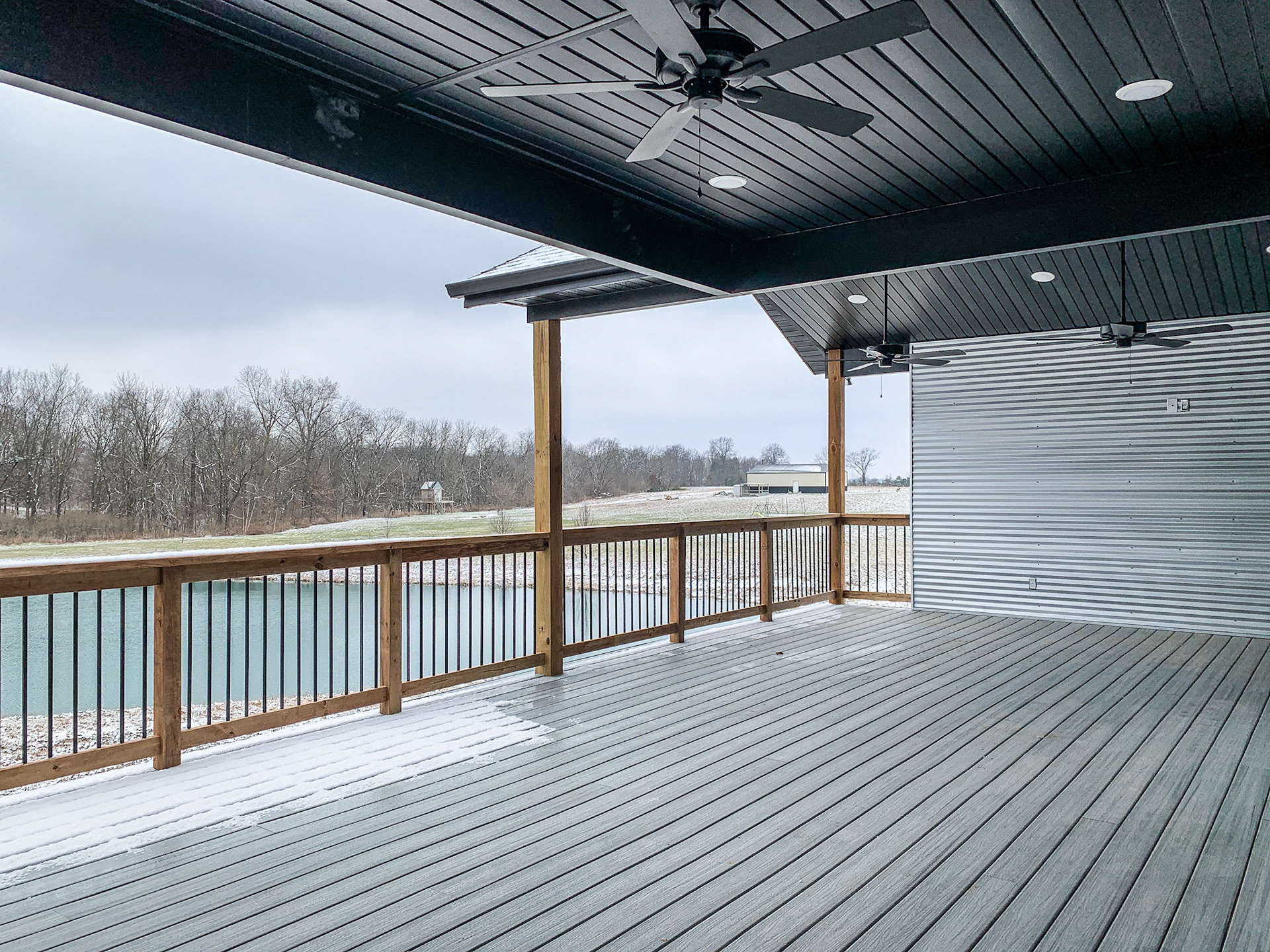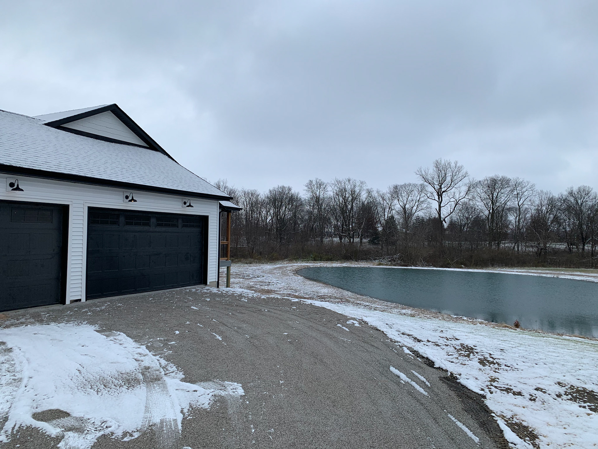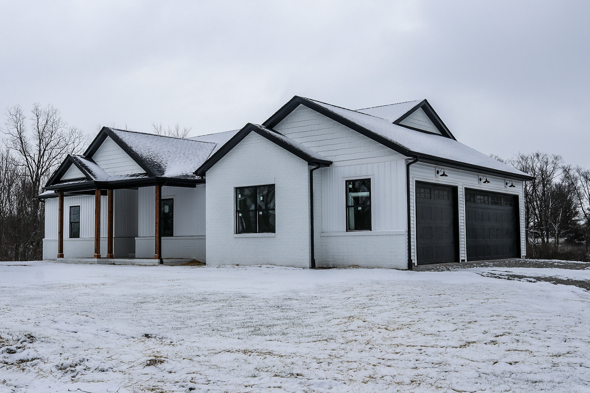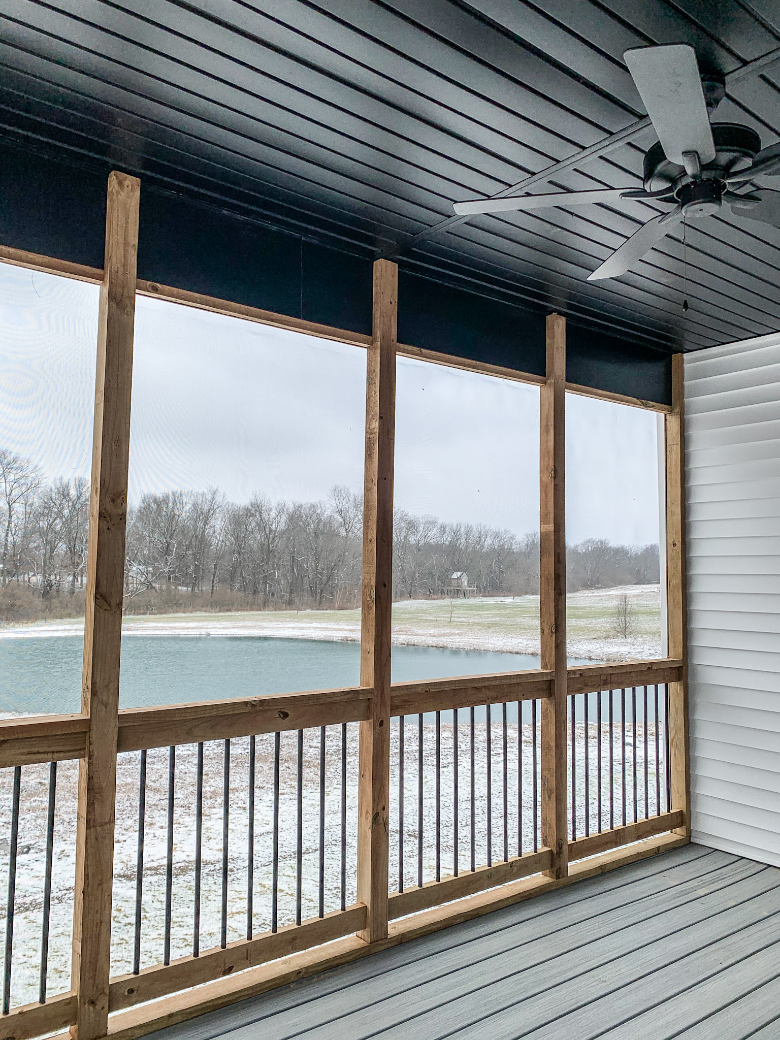 This beautiful modern farmhouse style ranch was a custom home build featuring a covered outdoor entertaining deck, a piano room, and a private master screened-in porch. This custom home was completed by a beautiful pond addition to the property!