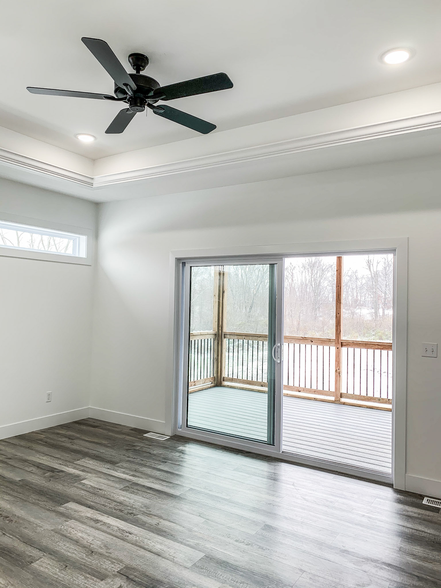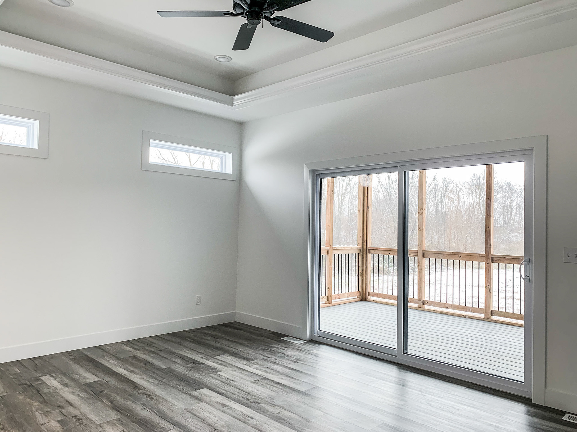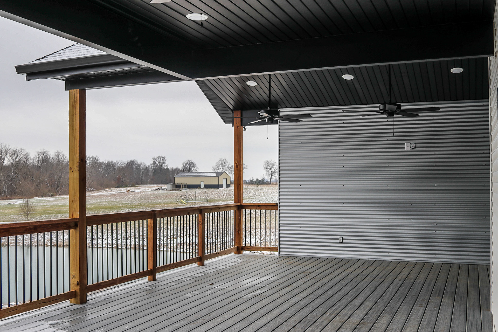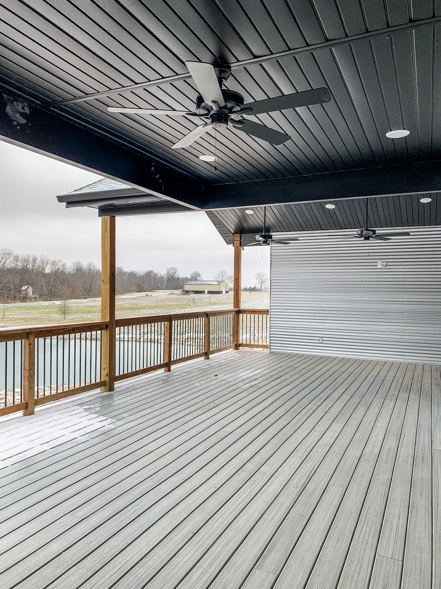 This beautiful modern farmhouse style ranch was a custom home build featuring a covered outdoor entertaining deck, a piano room, and a private master screened-in porch. This custom home was completed by a beautiful pond addition to the property!