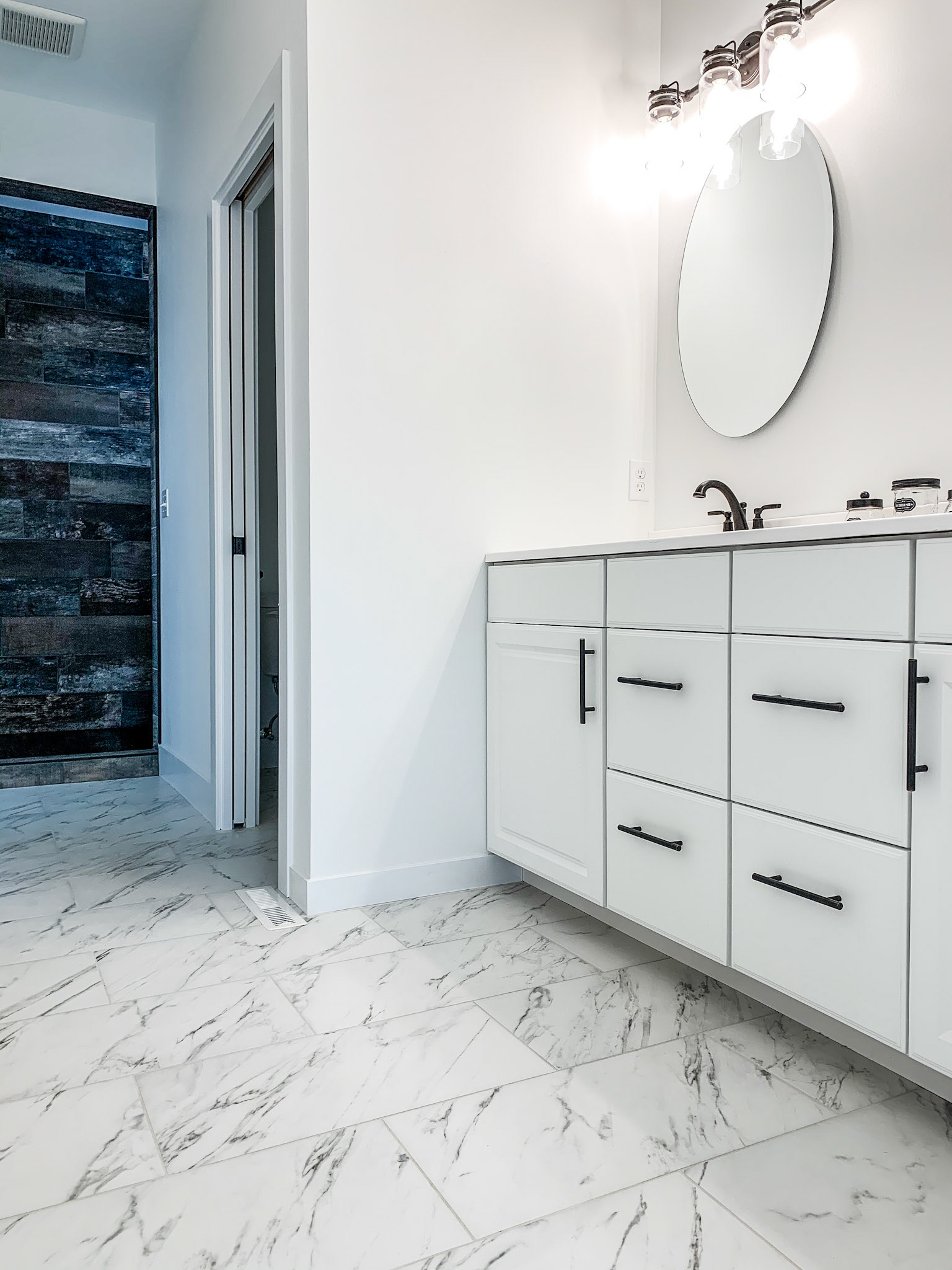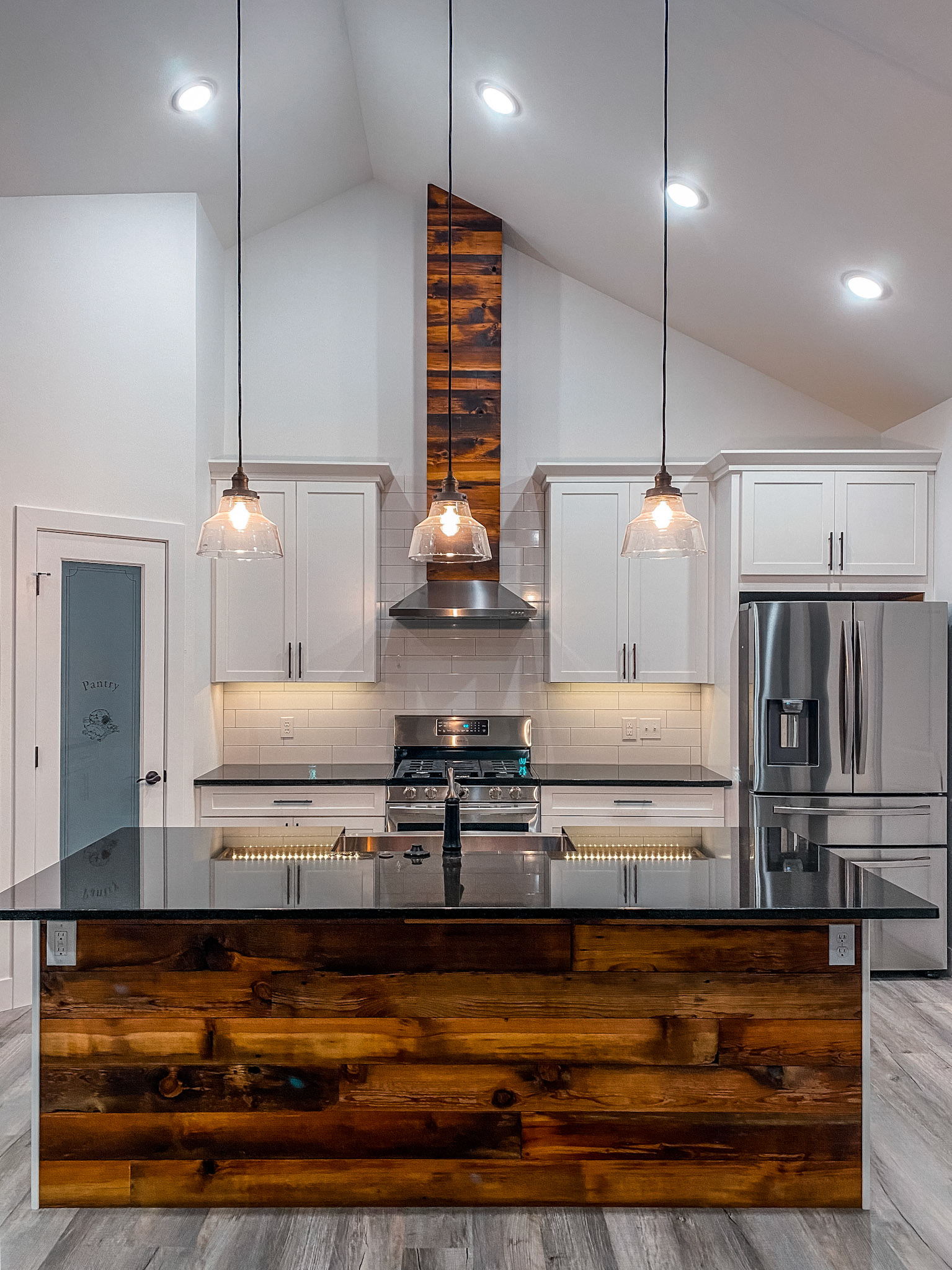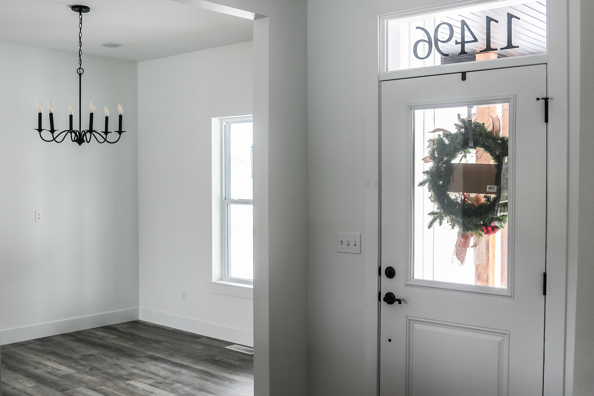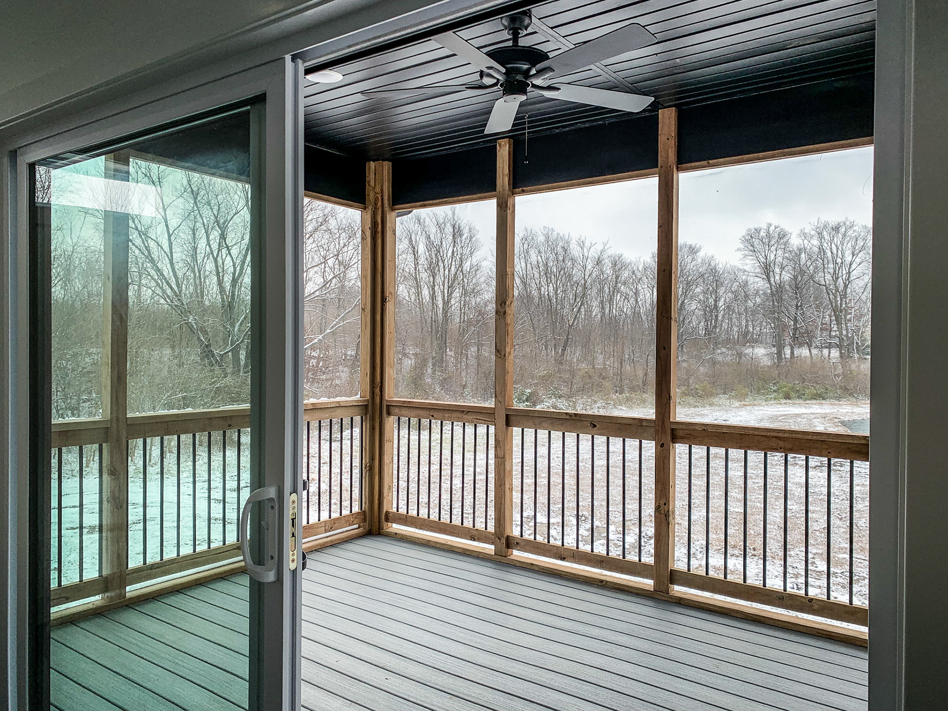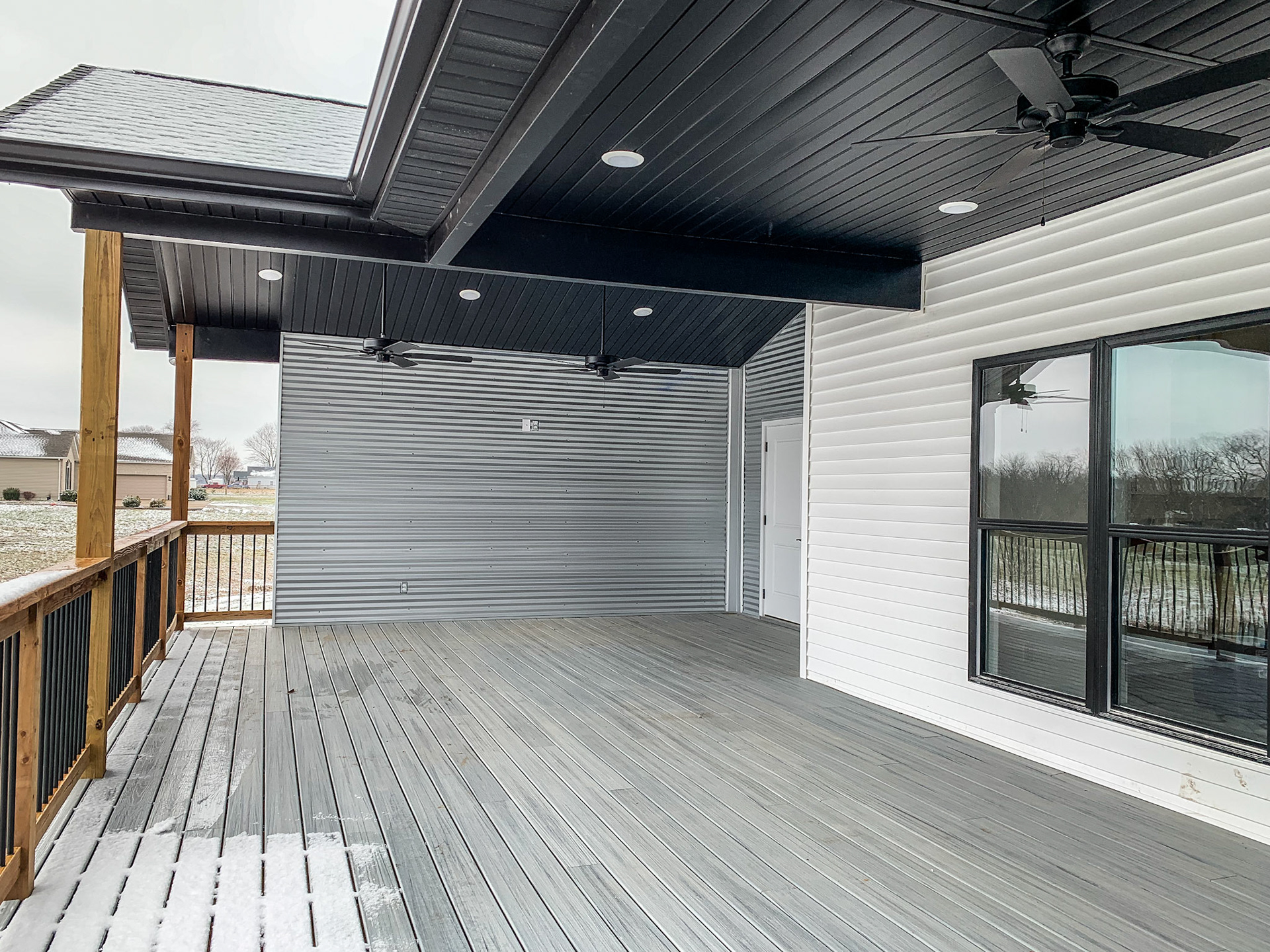 This beautiful modern farmhouse style ranch was a custom home build featuring a covered outdoor entertaining deck, a piano room, and a private master screened-in porch. This custom home was completed by a beautiful pond addition to the property!