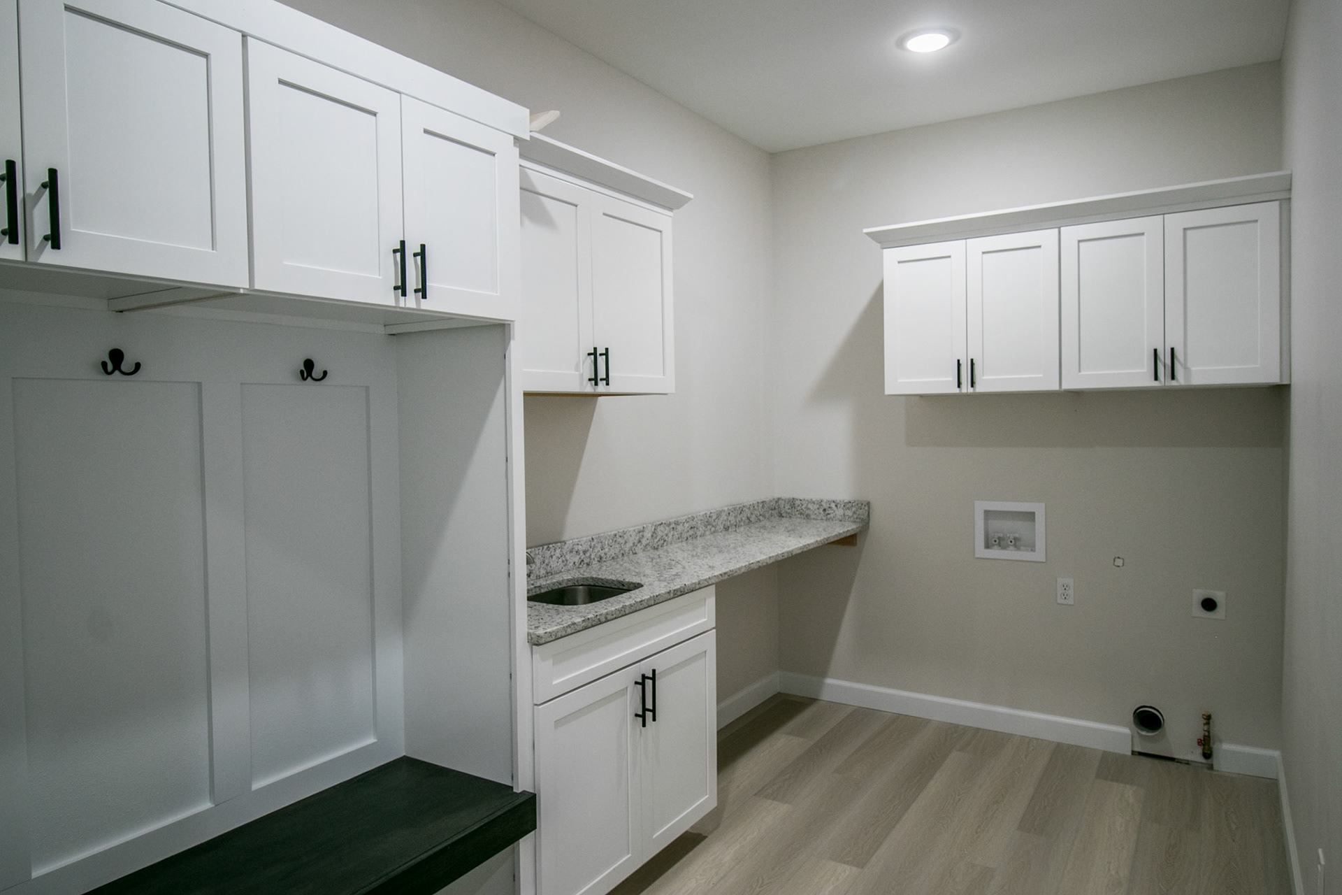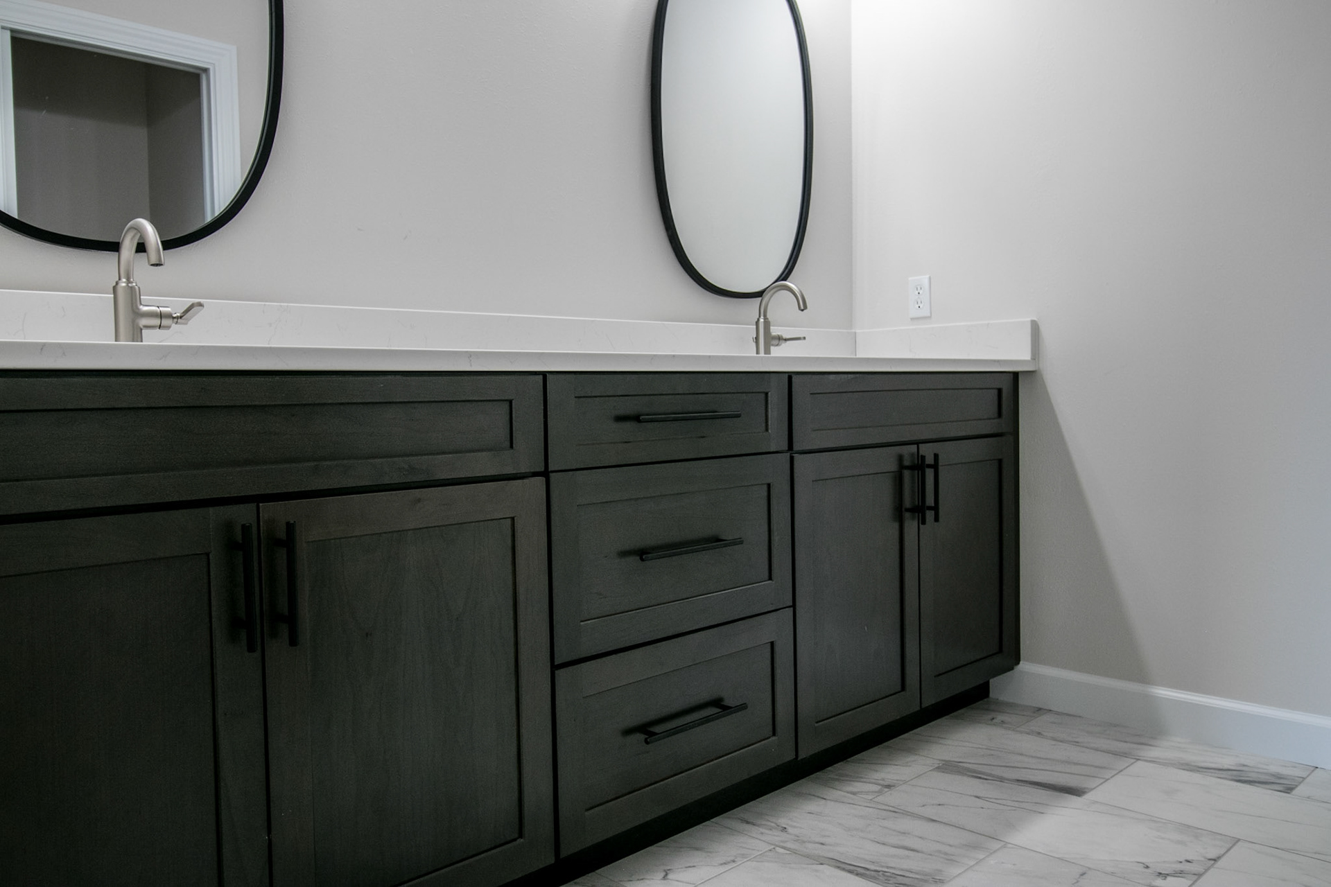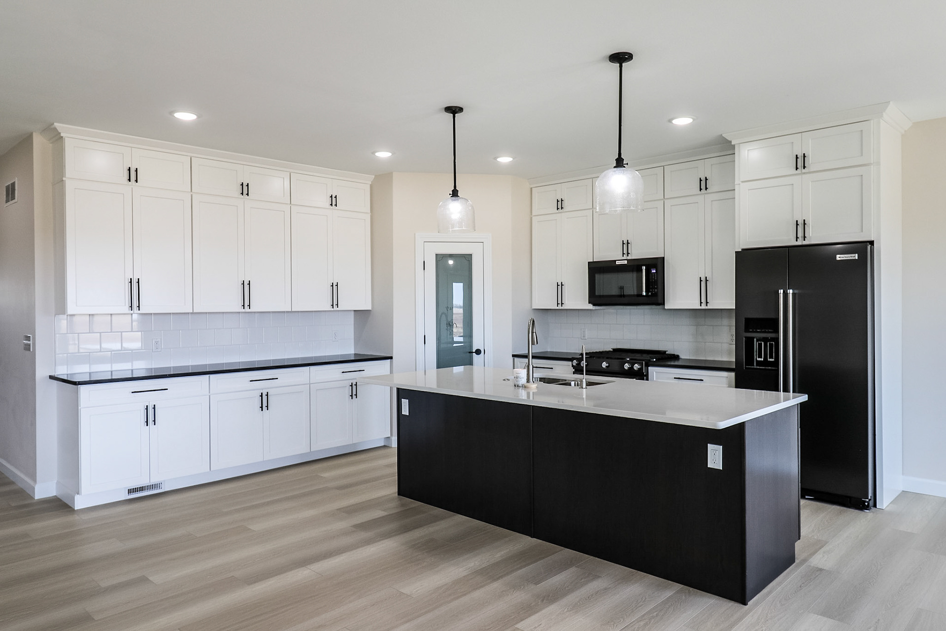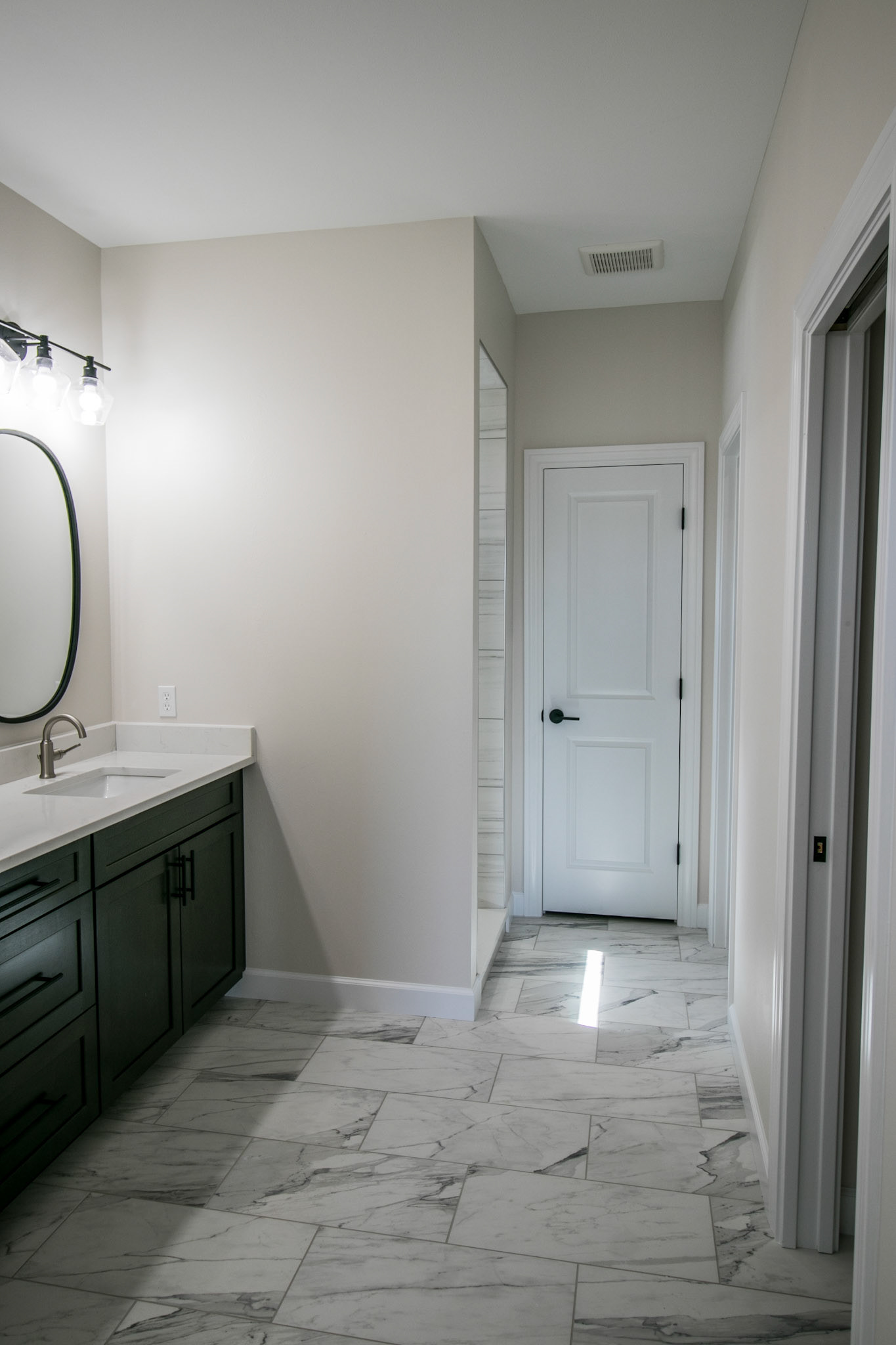 This modern black and white styled open concept ranch was a custom home in the popular Savannah Crossing neighborhood in Glen Carbon, IL just minutes from Edwardsville, IL! This new construction was customized with bold details and a steam shower.